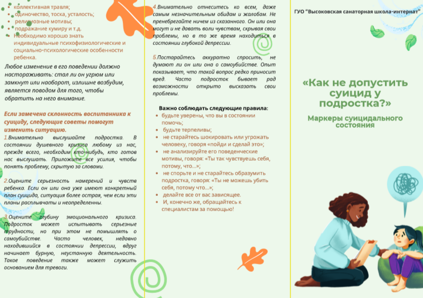 - мысли, разговоры о самоубийстве, суицидальные попытки.